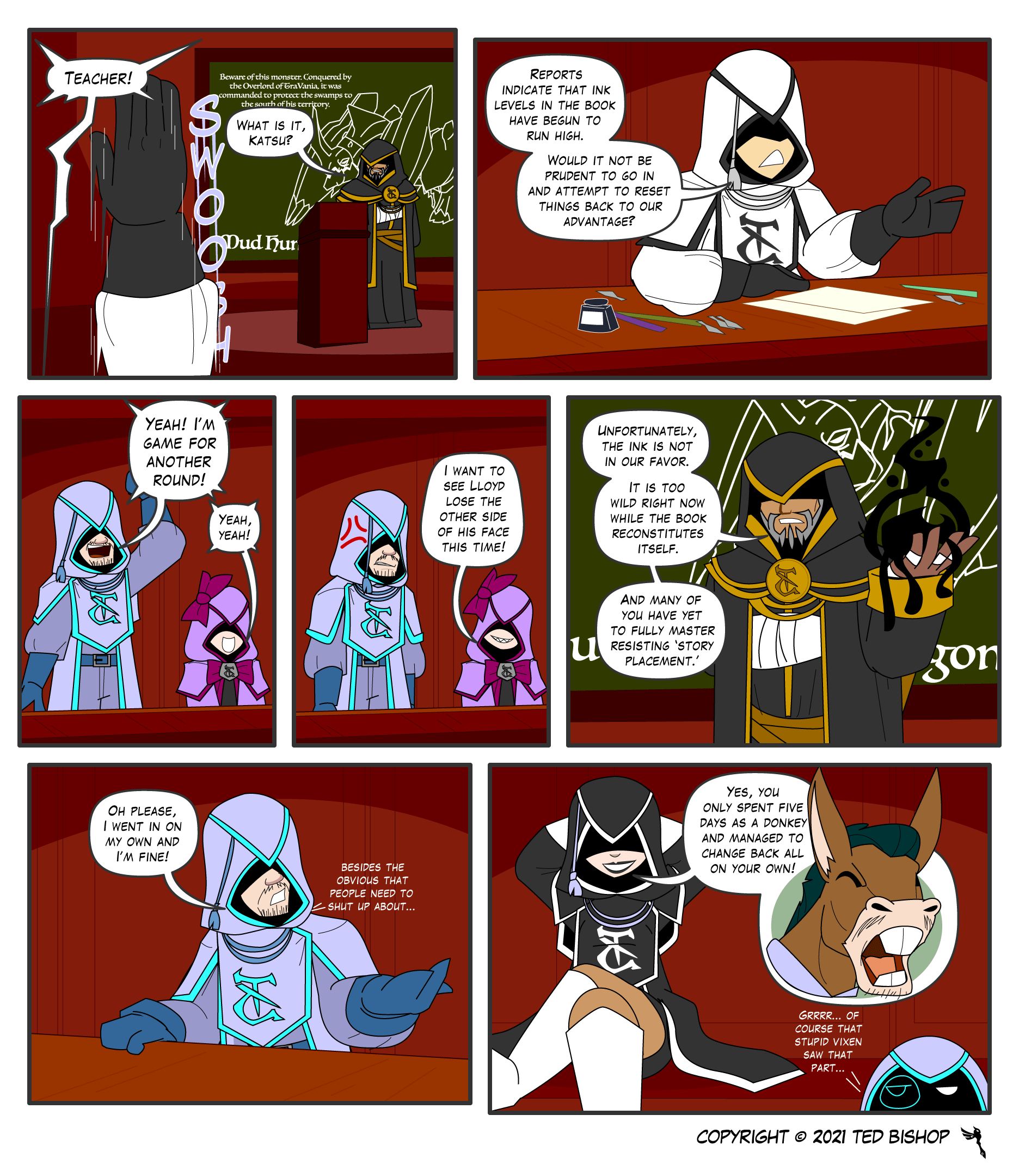 2. Mmm I think I would agree with Lloyd and…. Katsu(not sure if he throwing that idea or just asking). Yes thing are going wild but that mean defense may not be in order and people may be able to set the seed of future plans with out being seen as the books eye are else where(ok that was a weird thing to say). All so why many can deal with the changes , that mean the order has at lest a few people that can go in safely. . Now that I said that I will bet that why Isaiah is freeing Boundman right now. It likely be the most easy time to do so and seeing as the book is throwing out a new True line for Unicorn trail. It show that their is some thing to this idea…..or I may just what to see Lorecrafter turn into donkeys and get body part blow off. Who really now?